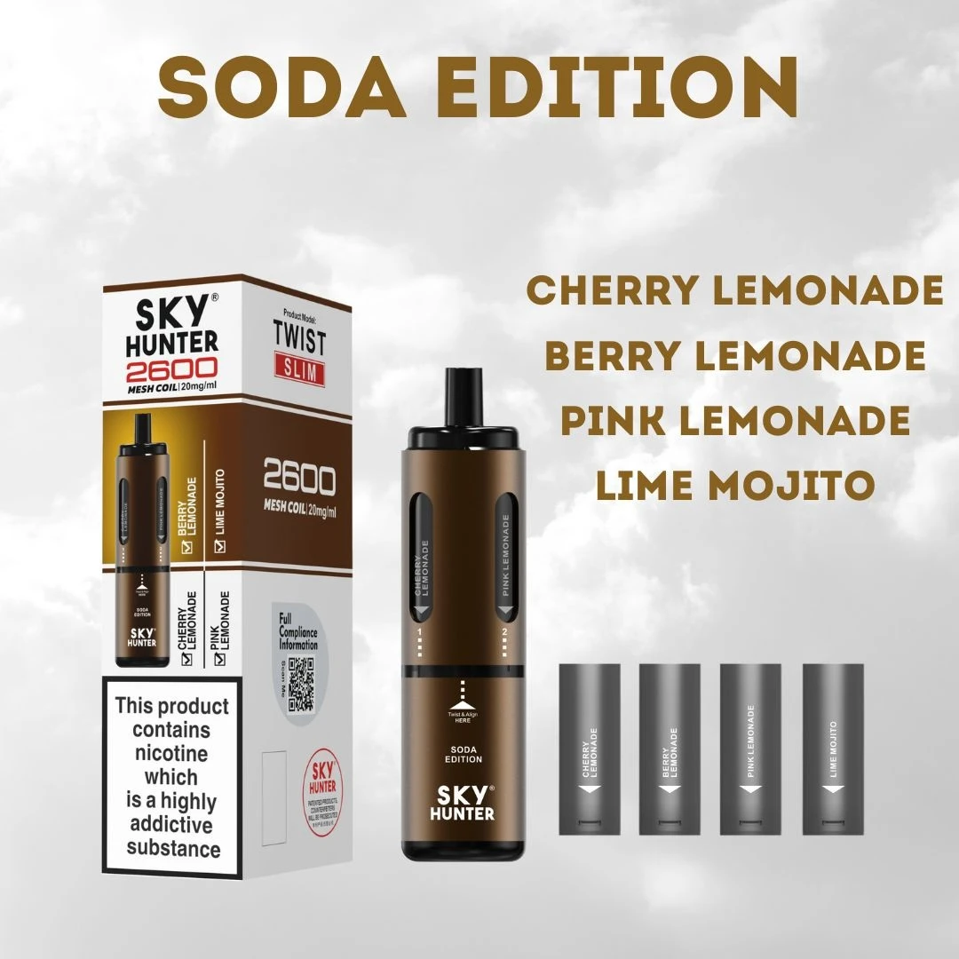 For all those craving a soda like vape- look no further than the Sky Hunter Soda Edition Disposable Vape with flavours such as Cherry Lemonade, Berry Lemonade, Pink Lemonade and the refreshing Lime Mojito.