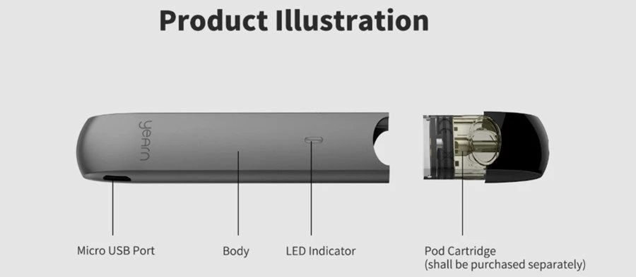 Uwell Yearn Pod System is a new closed pod kit from Uwell integrating a 370mAh rechargeable battery, LED battery life indicator light, it is designed with smooth lines and simple classic appearance, which provides comfortable hand feelings. Adopting the UWELL patented isolated e-liquid chamber technology, it will offer you a convenient and fresh vaping experience and is equipped with a slew of operational and hardware safeties and protections that will guard against failure when in use. The Uwell Yearn Pod Cartridge is not included. The pre-filled pods are sold separately!